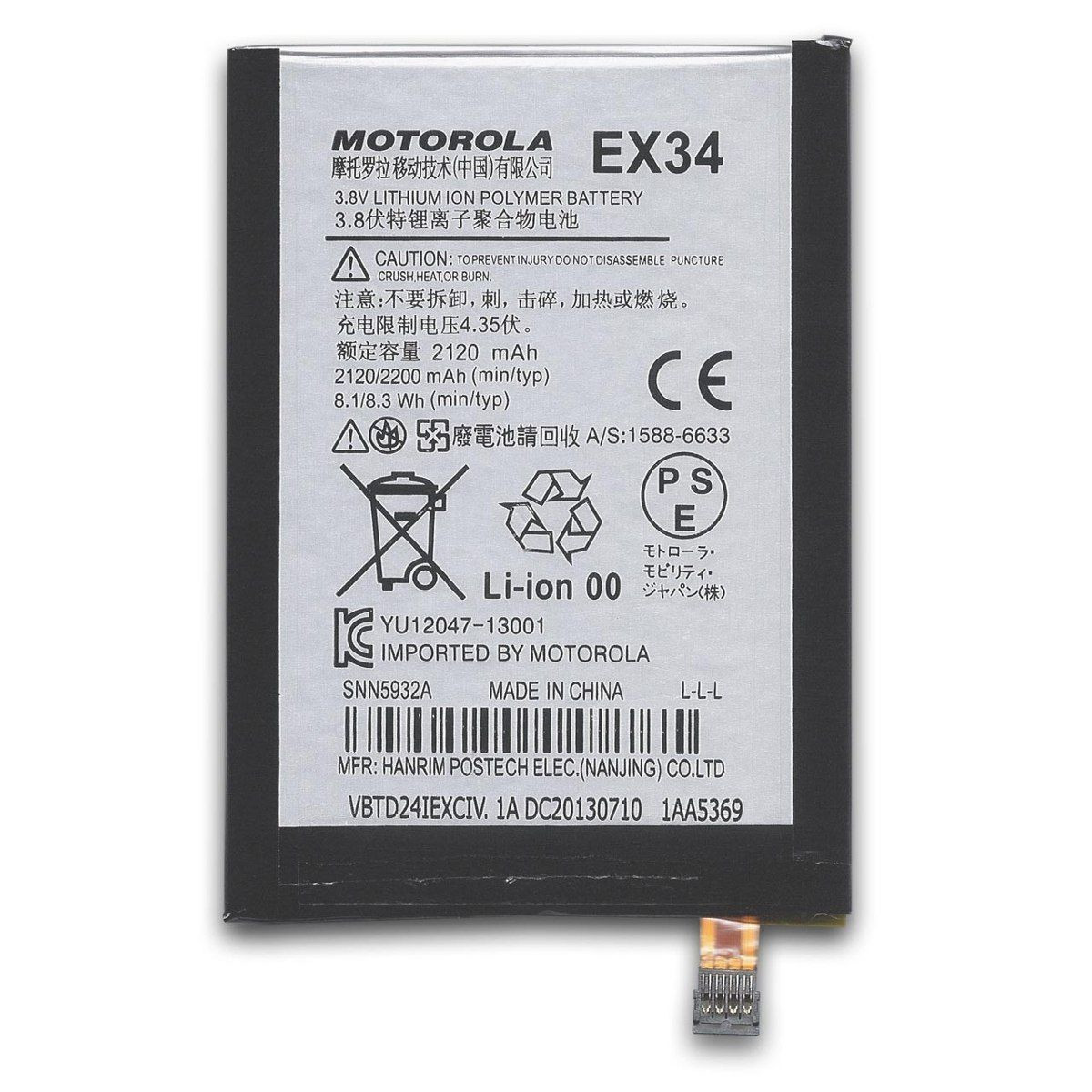BATERIA MOTOROLA XT1060, XT1058, EX34 BULK