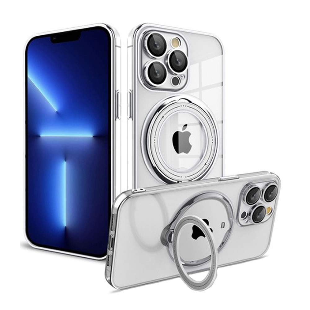 CAPA SILICONE COM ANEL DE DEDO APPLE IPHONE 14 PRO PRATA COM LENTE PROTETORA DE