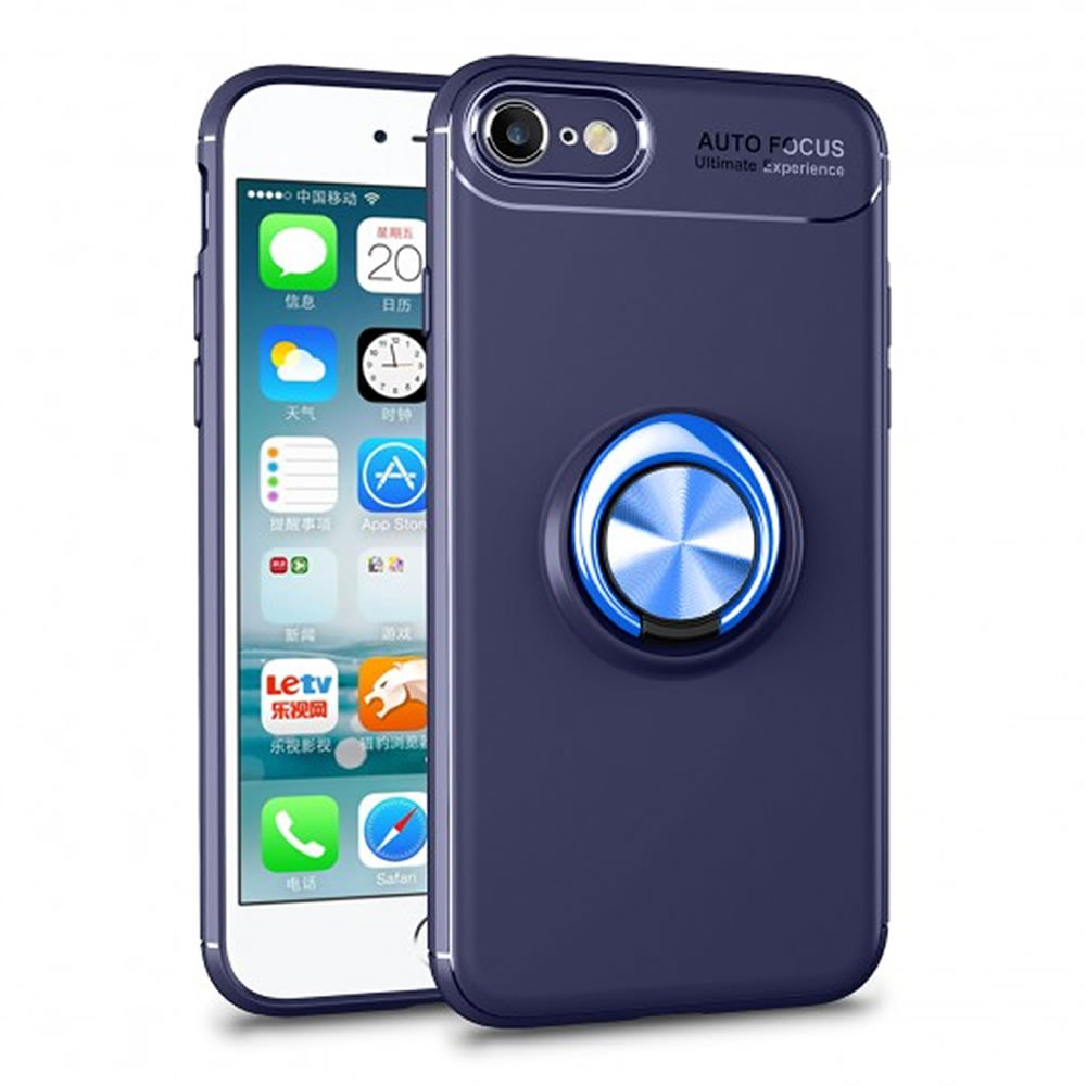 CAPA SILICONE DURA E METAL COM ANEL DE DEDO APPLE IPHONE 7/8 AZUL