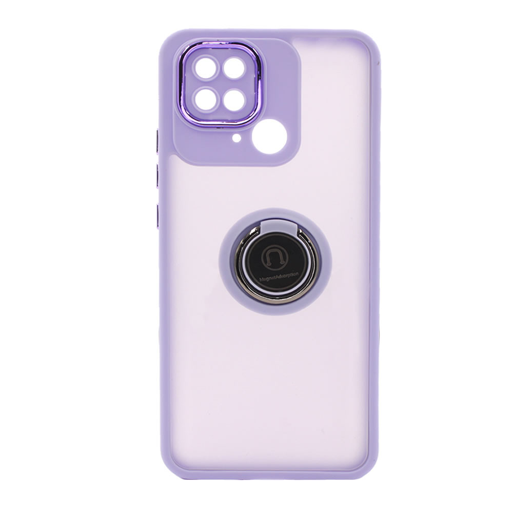CAPA SILICONE TPU COM ANEL DE DEDO MAGNÉTICO XIAOMI REDMI 10C LILÁS COM PROTETOR