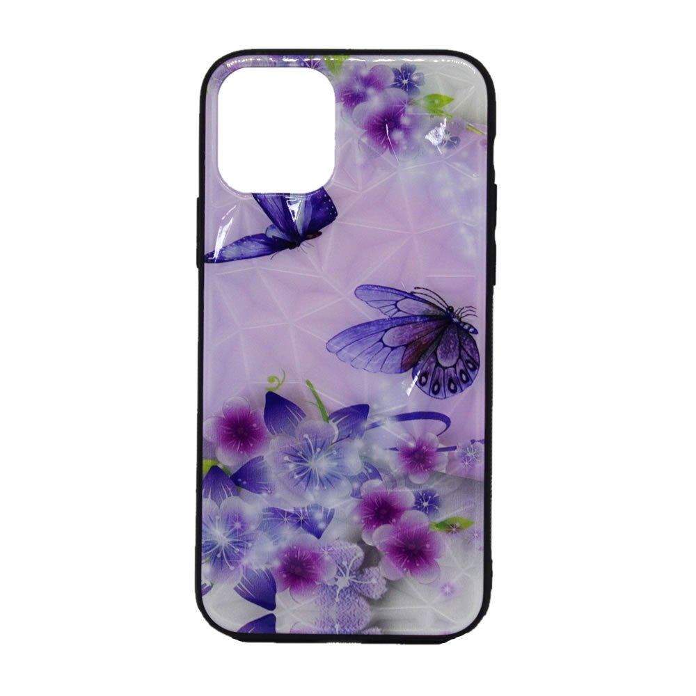 CAPA SILICONE TPU COM PADRÃO CRISTAL APPLE IPHONE 11 PRO MAX ROXO BORBOLETAS